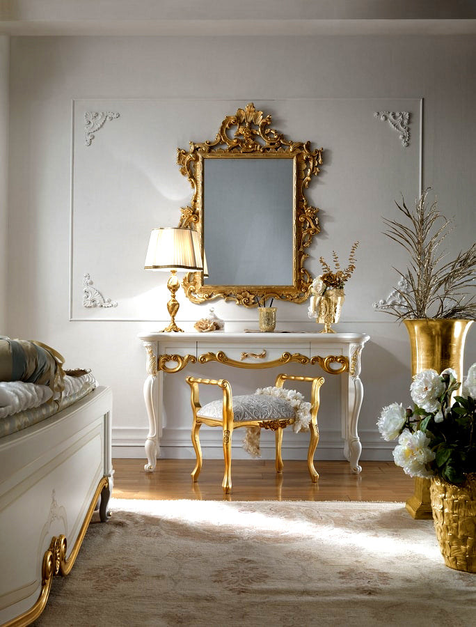 The Gold European Style Hand Carved Dressing Table is a true statement piece, exuding luxury, elegance, and timeless beauty. Whether used as a functional vanity or displayed as a work of art, this exceptional piece will transform any space into a haven of refined beauty and create a captivating focal point that will be admired for generations to come.