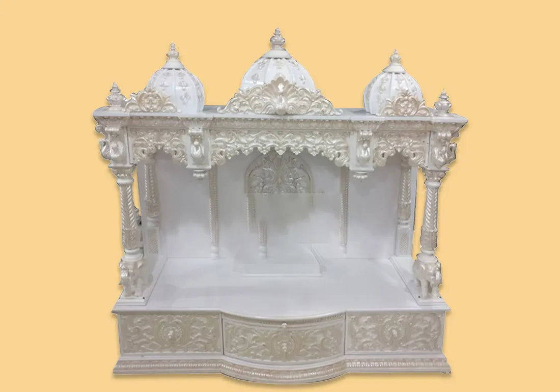 With its ample storage space and well-thought-out design, the Creamish Hand Crafted Teak Wooden Temple not only serves as a place for worship but also as a functional piece of furniture. It features multiple shelves, drawers, and compartments to keep your religious articles and essentials organized and easily accessible. Whether you are looking to infuse your living space with spirituality or seeking a beautiful focal point for your home, this handcrafted teak wooden temple is a testament to the beauty of tradition and the artistry of skilled craftsmen.