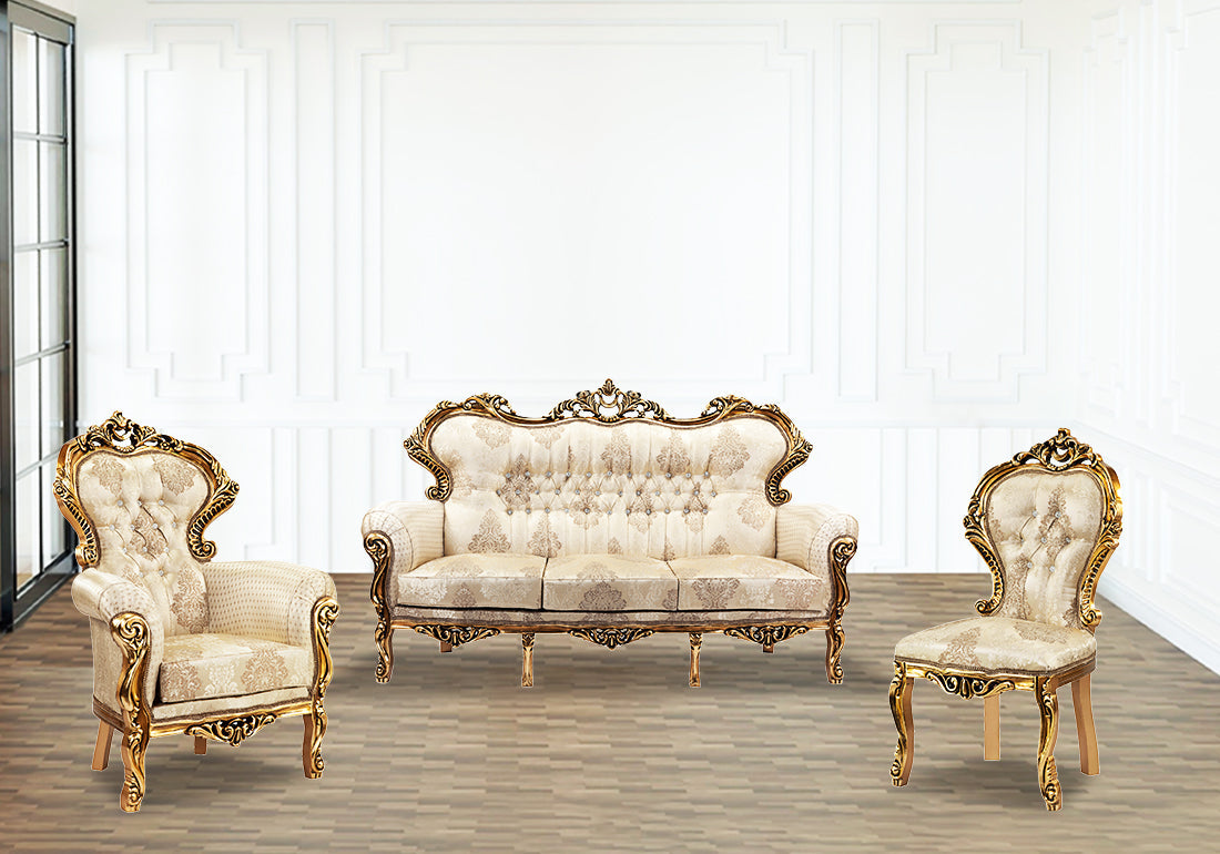 Immerse your home in grandeur and sophistication with the Royal and Luxury Handcrafted Wooden Sofa Set. This exquisitely designed masterpiece is a true testament to timeless artistry and unparalleled craftsmanship. Perfect for those who appreciate the finer things in life, this sofa set exudes a regal charm that transforms any living space into a majestic retreat.