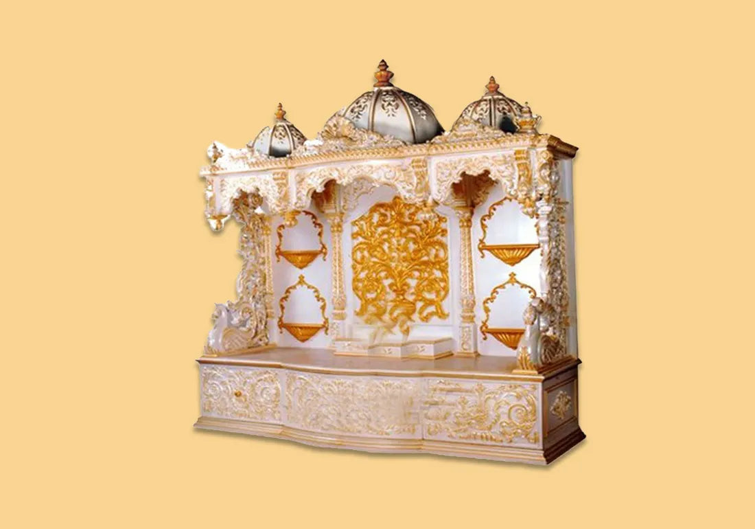 What sets this temple apart is its whitish finish, which adds a touch of contemporary style while maintaining a sense of serenity. The hand-carved detailing on the temple is intricate and showcases the craftsmanship and dedication of the artisans who created it. These carvings add an element of grace and spiritual significance, making it a true work of art.